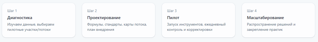 Результат: снижение времени операций, устранение избыточных движений, повышение производительности на 15–30%.